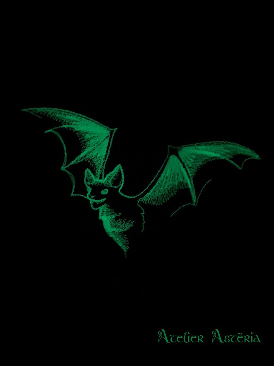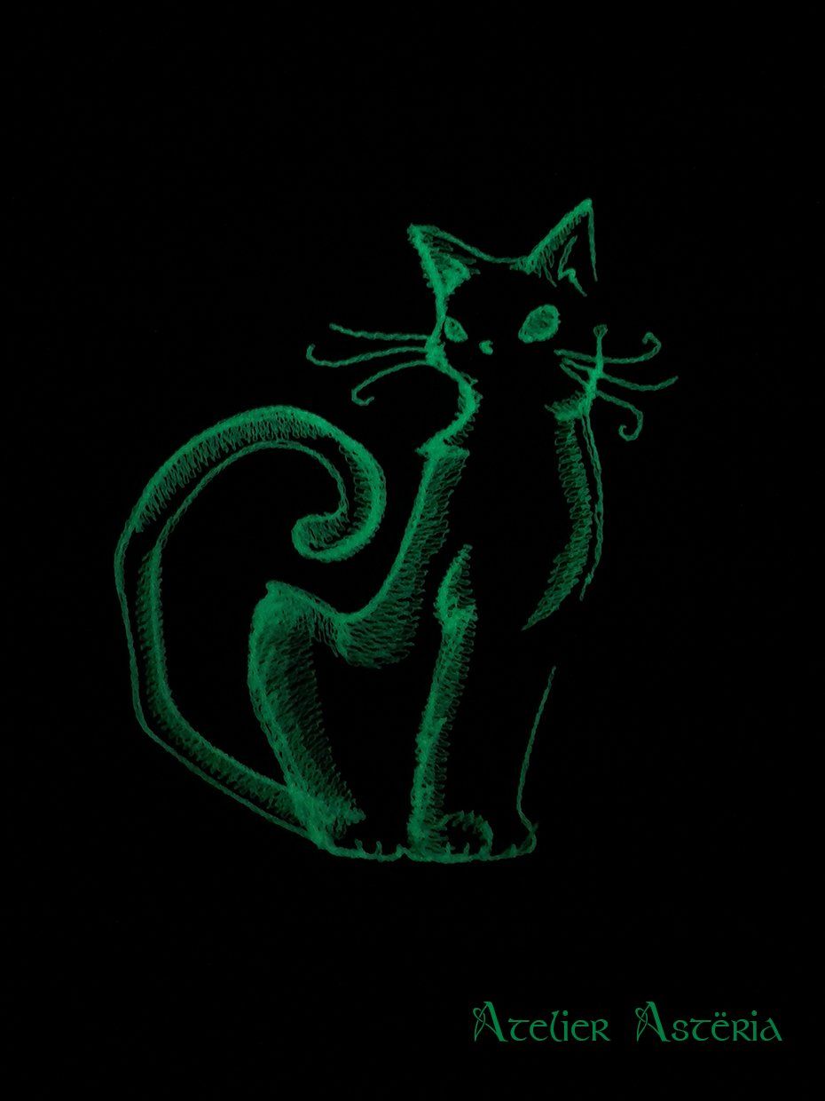 Mitaines noires en coton avec motifs brodés à la machine représentant des motifs sur le thème d’Halloween. Les motifs sont phosphorescents. Différents motifs